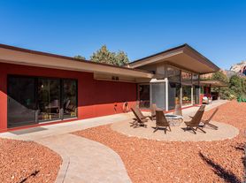 155 Quartz Drive-VOC-$3,895/mo - 3BR/2BA contemporary style single family home located in the Village of Oak Creek with red rock views. Built in 2000, approx. 1,932 sq., split bedroom plan and skylights. Enter the lovely courtyard which highlights a charming sitting area and views of the red rocks. Living room showcases cathedral ceiling, flat screen TV, three large picture windows streaming in natural light, gas fireplace and art niches. Stunning kitchen with stainless steel appliances, kitchen sink oversees the great room, gas stove, black granite counter tops, and breakfast nook with access to the front courtyard. Wonderful dining room seating for six plus and easy access to the covered patio area. Spacious master bedroom highlights king size bed, flat screen TV, sitting area and walk in closet. Master bathroom boasts two sinks, separate soaker tub and shower. Travel to the other side of the home. Separate laundry room with washer/dryer. Second bedroom sofa turns into a full size bed and TV. Second bathroom has tub/shower combination. Third bedroom features a queen size bed, TV and views of the mature landscaping. Enchanting covered deck with outdoor table and chairs, open fenced backyard and views of our incredible red rocks. Double car garage.