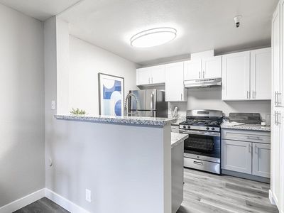 New laminate flooringDesignated parking spotQuartz counter topsTons of storage spaceLaundry indoorsLarge closet space