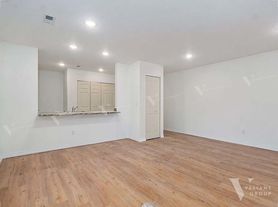 Discover this newly built three-bedroom, two-bathroom duplex with an attached one-car garage in the Heart Of The Westside neighborhood. It has luxury vinyl plank flooring installed throughout, fresh paint, and a functional layout. The open-concept living area flows into a kitchen with a breakfast bar, dishwasher, stove, and oven. There's a laundry closet with washer and dryer hookups, plus extra storage. Tenant provides their own refrigerator. A long hallway leads to two bedrooms and a full bathroom, with the primary bedroom at the back of the house. The primary bedroom has a large closet and an en-suite bathroom with a bathtub-shower combo.