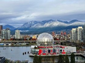 If viewing on Zillow please text/email agent directly. Luxurious air conditioned waterfront condo at The Navio- South Block available for rent. 10th floor corner unit with large balcony and beautiful water view overlooking Science World. This spacious unit features an open floor plan and a sophisticated level of finish. An elegant kitchen with contemporary high gloss white acrylic cabinetry with soft close doors, seamless quartz slab countertop, kitchen island with granite counter and wood veneer cabinetry, high-end German appliances, touch control electric cook top in black ceramic and glass. Beautiful wide plank engineered hardwood flooring throughout living spaces.