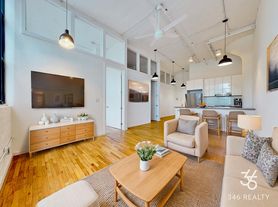 Welcome to 17 Thames Street in East Williamsburg a fully renovated two-bedroom apartment that combines modern finishes with classic Brooklyn loft style. The home features soaring ceilings, 6-inch pre-finished hardwood floors, and oversized windows that fill the space with natural light. The brand-new kitchen is outfitted with sleek stainless-steel appliances, quartz countertops, and custom cabinetry, creating the perfect setting for cooking and entertaining.