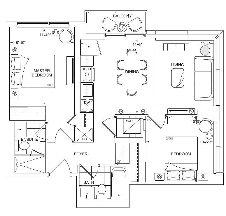 Modern Suites: Private balconies, floor-to-ceiling windows, designer features and finishes, steel appliances, quartz countertops, in-suite laundry, and climate control.