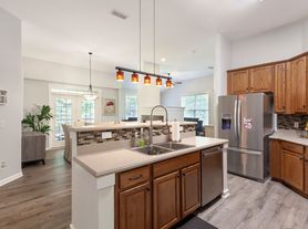 Inside, you'll find a spacious kitchen with stainless steel appliances, a large center island, and plenty of cabinet space perfect for cooking or entertaining. The dining area and living room each feature their own fireplace, creating an inviting atmosphere. The primary suite includes a generous walk-in closet with built-ins and a spa-style bath with double sinks, soaking tub, and glass-enclosed shower. Two additional bedrooms, a hall bath, and a separate laundry room add comfort and convenience.