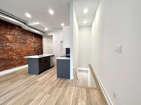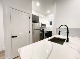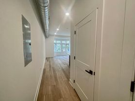 The apartment features laminated floors throughout, a kitchen with stainless steel appliances, including an electric stove, dishwasher, microwave, and refrigerator. Breakfast island. Washer and dryer in the unit. Central A/C and heat.