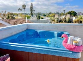 Private Rooftop Deck with a 6-person hot tub and distant views of Mission Bay and downtown plus a great vantage point to catch SeaWorld fireworks on select nights.