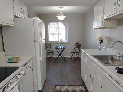 Welcome to Strand Living in the Commerce Building! This third floor unit. There are gorgeous hardwood floors throughout. The kitchen and living room area are an open concept with a built-in cabinet and refrigerator, dishwasher, stove appliances. Bathroom with tub/shower is located by the bedroom with washer/dryer connections for a stackable unit. The master bedroom has an attached bathroom with a standing shower. Beautiful views of the park. Living on the strand you have access to great food, fun and all the festivals held downtown. This building does have an elevator to the third floor. STREET PARKING OR PAY FOR CONTRACT PARKING AT FROST BANK GARAGE 2 BLKS AWAY.