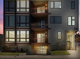 First-floor residence located in a loft-style apartment building with elevator access; central air conditioning; hardwood floors; high ceilings; open kitchen with stainless steel refrigerator, range, microwave, and dishwasher; private washer/dryer in apartment; patio; garage and off-street parking available for an additional monthly fee.
