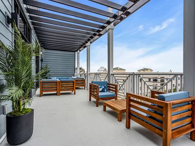 Two private balconiesBring in natural lightModern kitchenHardwood floors