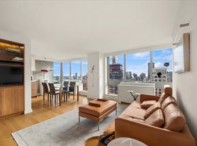 Flooded with sunlight from walls of floor-to-ceiling glass, the apartment captures panoramic vistas stretching east, south, and west over the Manhattan and Queensboro Bridges, the Chrysler and Empire State Buildings, and the dazzling new architectural landmarks defining Midtown's skyline.