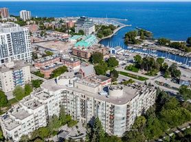 INCREDIBLE RENTAL OPPORTUNITY AT BRONTE HARBOUR CLUB! NESTLED ALONG THE BANKS OF BRONTE CREEK! BOUTIQUE CONDO LIVING IN THE HEART OF BRONTE! Available for immediate possession, this beautifully maintained condominium offers approximately 1,211 square feet of bright, functional living space, with a layout designed for both everyday comfort and entertaining. Highlights include an updated kitchen with granite countertops and illuminated display cabinetry, an oversized living/dining room with Berber broadloom and walkout to a private balcony, a spacious primary bedroom with dual closets and a four-piece ensuite, second bedroom, three-piece bathroom, in-suite laundry with a stacked washer and dryer, plus one underground parking space and a convenient storage locker. Expansive floor-to-ceiling windows flood the interior with natural light. Enjoy outstanding amenities including 24 hour concierge/security, indoor pool, hot tub, sauna, fully equipped fitness centre, library, party and games rooms, workshop/craft room, guest suites, an outdoor terrace with creek access, and ample visitor parking for guests. An active social calendar with organized games, activities, and community events creates a vibrant lifestyle for residents. Ideally located just steps to Bronte Village shops, cafes, restaurants, Bronte Harbour, waterfront trail, parks, and the lake. Commuters will appreciate the easy access to public transit, major highways, and the GO Train. (some images contain virtual staging)