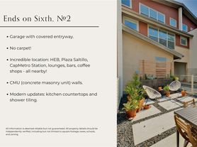 This is your chance to snag a large two-bedroom condo on a very hip stretch of East 6th. The location is incredible. Step outside and walk to some of East Austin's best spots, including lounges and coffee shops, an H-E-B, Plaza Saltillo, and the CapMetro Rail. Downtown Austin is just a five-minute bike or scooter ride away. Just outside the front door, you'll find a fenced private patio for morning coffee or evening cocktails, an attached one-car garage with additional driveway parking, and a flexible floor plan with an open-concept second-floor living and kitchen area. The full-floor primary suite features an updated walk-in shower, and the second bedroom works perfectly as a guest room or work-from-home office. Thoughtful construction with shared walls made of concrete masonry units (CMU) provides extra sound insulation and peace of mind. Modern updates, such as new kitchen countertops and bathroom tiling (both done in 2022), complete the package. This is East Austin living at its finest. Modern, versatile, and perfectly connected.