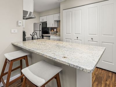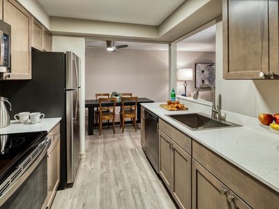 Open-concept living spaceAmple counter spaceFlexible living spaceHome officeOpen kitchenModern appliancesExtra sitting area