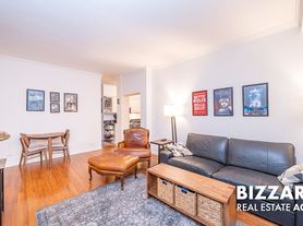 The king-size bedroom enjoys two exposures, fantastic natural light, and a large closet. The windowed bathroom is elegantly tiled and features a pedestal sink, soaking tub, and updated fixtures. Beautiful hardwood floors run throughout, and multiple deep closets provide excellent storage.