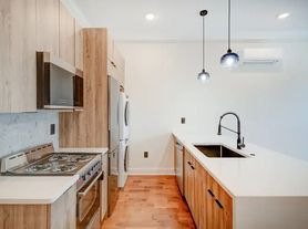 Welcome to this stunning, newly renovated property that offers a perfect blend of modern luxury and urban convenience. The apartment features brand new hardwood flooring throughout the main living spaces and a captivating exposed brick accent wall in the living area, complemented by a contemporary, clean electric fireplace. The gourmet kitchen is a chef's delight, boasting sleek light wood cabinetry, expansive white quartz countertops, and top of the line stainless steel appliances, including a convenient in unit washer and dryer. A standout feature is the striking bathroom, finished with vibrant, textured teal subway tile, chic geometric floor tiles, and high end matte black fixtures. Located in a desirable neighborhood, this unit offers easy access to transportation, dining, and shopping. This is the ideal home for renters seeking unique style, premium amenities, and a contemporary, easy to maintain living experience.