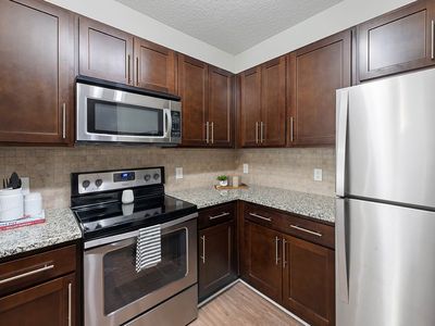 The interior has been fully updated with luxury vinyl plank flooring, new appliances, updated plumbing fixtures, and a refreshed bathroom with a new bathtub and modern finishes. The kitchen and living areas provide a comfortable and functional layout, perfect for relaxing after work or enjoying a quiet evening at home. A private balcony extends the living space and offers a pleasant outdoor area to unwind.