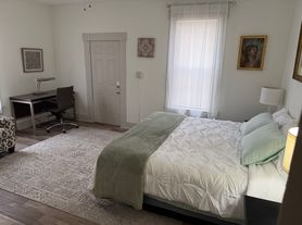 One large bedroom with king size bed, desk, and armchair; a second bedroom with a full size bed. Renovated bathroom, spacious kitchen, and living room. Washer and dryer in unit. All utilities included, including high-speed internet and cable TV. All necessary linens, dishes, coffee maker, microwave, etc. included. Space for off-street parking behind house on alley.