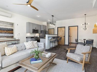 - Updated kitchen with electric range, microwave, refrigerator, and dishwasher