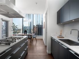 Gigabit internet (up and down). Herman Miller Aeron chair. Large desk with 34" widescreen curved monitor with docking station. Office quality printer / scanner. HD streaming camera. Adjustable bed frame. Motorized blackout shades. Rooftop pool. Small fitness center.