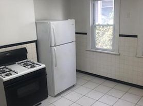 Open floor plan, three-bedroom, one-bathroom, very large Living room and dining room, Kitchen, Hardwood floors, off-street parking. Also has CENTRAL AIR.