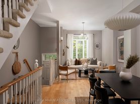 Rare opportunity to lease a fully furnished loft in Leslieville's iconic I-Zone. Offering 2,329 sq ft of living space with soaring timber & beam ceilings peaking at nearly 25 ft, exposed brick, polished concrete floors, and a private 375 sq ft rooftop terrace, this authentic hard loft is truly one-of-a-kind! The chef-inspired kitchen showcases quartz counters, oversized island, and a full suite of top-of-the-line KitchenAid appliances including large oven/stovetop, double-door fridge, wine fridge, and whisper-quiet dishwasher. The open layout flows seamlessly between dining and living spaces while skylights flood the loft with natural light. Every furnishing and finish has been thoughtfully selected: Restoration Hardware dining set, bed, storage units and mirrors, Elte armchairs and coffee tables, hand-knotted Persian rugs, solid rosewood entry chest, and crystal decanters. Essentials are all included, linens, bedding, cutlery, plates, cookware, Breville automatic toaster, Blendtec industrial blender, and Coway Airmega air purifier sized for the entire loft. Simply turn the key and enjoy immediate high-end living. The main level includes a spacious second bedroom, three-piece bath with glass shower, and expansive living areas. The upper-level primary suite offers custom closets and a spa-like six-piece ensuite. This loft comes with a dedicated private underground parking spot. Located in a vibrant, creative hub steps to Queen St Easts trendy restaurants, cafes, galleries, parks, fitness studios, and transit, with quick access to the DVP, Gardiner, and Lakeshore. A rare offering, this is loft living at its absolute best!