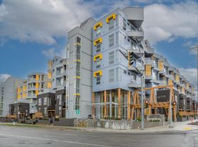 Features 2 side-by-side full-size secure parking stalls, common EV charging, large corner locker & bike room. Enjoy a Scandinavian-inspired interior, high ceilings, open plan, wide-plank flooring, spacious kitchen w/eating bar, stainless appliances, quartz counters,