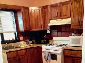 Well maintained unit with 3 large bedrooms, one bedroom you walk thru to get to the other bedroom, so that is perfect for an office or storage, Eat in kitchen, Living room, dining room, hardwood floors throughout unit, lots of windows and closets, laundry in unit! Walk to commuter train, on bus line. plenty street parking