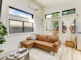 This apartment features modern furnishings and appliances, including a smart TV and a Dohm white noise machine. The kitchen is equipped with a refrigerator, dishwasher, stove/oven, microwave, cooking basics, dishware, flatware, and a drip coffee maker. Enjoy the convenience of free Wi-Fi, central air conditioning and heat, and an in-unit washer and dryer.