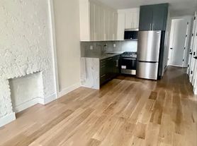 Introducing meticulously designed floor through 3 bedrooms, 2 full baths, located on the top floor of a small building located at the border of Clinton Hill & Bedford Stuyvesant. This sun-drenched apartment has a lot to offer. As you enter the apartment, you are welcomed by an open kitchen, a living room layout, high ceilings featuring 2 skylights in the living room, which soak this spacious apartment with sunlight, featuring wide plank white oak hardwood floors throughout, and exposed brick with a decorative fireplace. Designer kitchen features with wood double cabinets, Calcutta natural stone counter top with back splash and waterfall, high-end appliances, including dishwasher, stove, fridge, and microwave. Two out of 3 queen-size bedrooms are located at the rear of the building, facing the backyard. Each of the bedrooms features spacious closet spaces, recessed lighting with a central light, and wood paneled windows. 3rd bedroom is located at the front of the apartment, facing the street. Carefully designed two full bathrooms, featuring floating vanities and smart, heated toilet seats. One of the bathrooms features a full tub, and the other has a stand-up shower. This beautiful apartment also features a washer and dryer, video intercom, and blue Bluetooth speaker, and central heating and cooling.