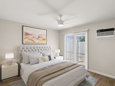 Nice sized bedroomRecessed lightingNew plank flooringBar seatingCeiling fanStep-in showerStainless steel appliances