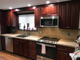 The bathroom is finished with contemporary tilework, a step-in shower, and modern fixtures. The location offers convenient access to local shopping, dining, bakery, dry cleaner, and CVS, with easy proximity to major institutions approximately 12 minutes to Brookhaven National Laboratory, 25 minutes to Stony Brook University, and 15 minutes to Mather and St. Charles Hospitals. Private beach membership is available to residents through annual subscription. Rent includes all utilities except electric. Please note: there is no washer or dryer on the premises. **Photos have been digitally rendered to exhibit updated landscaping and masonary work.**