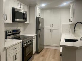 Freshly painted, remodeled kitchen, and new floors. Vaulted ceilings and recessed lighting throughout. Nice size rooms, master suite with private bathroom and large closets. Community pool and hot tub. One car garage plus an assigned parking spot and plenty of visitor parking. Rent includes water and garbage.