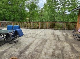 This is a furnished apartment, located on 2nd floor with a large deck. A patio table and chairs are provided for evening BBQs and views of mountains behind property.