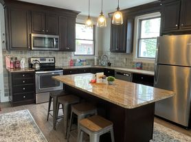 Large 3 bedroom apartment with 1 study or home office or large walk in closet on third floor. Cathedral ceilings, six Sky Lights, wood floors, eat in kitchen, granite island, stainless steel appliances, large bathroom with separate shower and tub, granite counter top vanity, deck with water views, laundry, storage in basement, yard, and off street parking in Yachting District of Newport. New gas hot water and gas heating system. Dogs OK pending approval. 1 Block from Thames St. $2500 per month rent until 30 April 2026; $3000 per month rent starting 1 May 2026.
