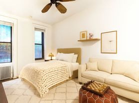 This oversize studio apartment with an open kitchen, high ceilings and a charming soapstone fireplace mantle features over 26 feet of open living space, with built-in storage, exposed brick, In-Unit Laundry and is directly facing the building's shared garden space, available for tenant's use. .