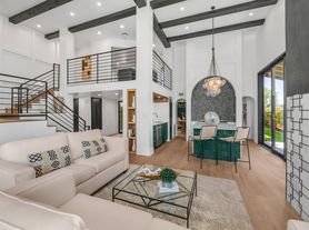 Main floor living features 16' tall ceilings with primary bedroom on the main level. Guest have their own suite upstairs along with an office that overlooks the main floor.