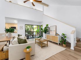 The recently painted three-bedroom, two-bathroom townhouse has easy to clean vinyl plank flooring, stainless steel appliances, a one-car garage, and one open parking space.