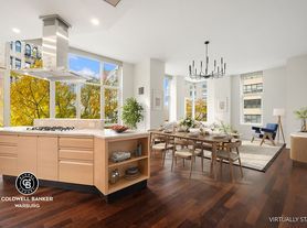 Welcome to Washington Loft! This refined two bedroom, two and a half bath loft features dramatic 11.3 foot ceilings and sweeping Hudson River exposure through expansive floor to ceiling glass. Natural light pours into beautifully proportioned interiors, where contemporary design meets a sense of calm and openness. The living and dining spaces feel gallery like, ideal for both intimate evenings and elegant entertaining, all framed by protected river, park, and skyline views.