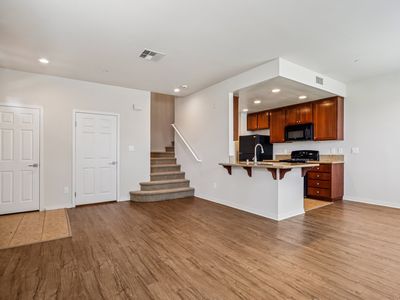Located in the heart of the sought-after Dos Vientos community, this beautiful two-story condo offers the perfect blend of comfort and convenience. Surrounded by parks, hiking trails, and zoned for one of the area's top-rated schools, the location is ideal for families and outdoor enthusiasts alike. 3 Bedrooms, 2.5 Baths Approx. 1,524 sq. ft. of living space Private enclosed patio with mountain views Inside, you'll find beautiful wood-like flooring, a spacious dining area, and a living room with a cozy fireplace. The kitchen is a chef's delight, featuring a center island, granite countertops, ample cabinet space, and stainless steel appliances. The downstairs also includes a convenient half bath with tile flooring and a pedestal sink, plus a laundry room with tile floors. Upstairs, the large primary suite offers a walk-in closet and a private bath with dual sinks and tile finishes. Additional highlights include a two-car attached garage with direct access and access to the Dos Vientos community amenities, including pools and nearby open space. This is a fabulous unit in one of Newbury Park's most desirable neighborhoods don't miss it!