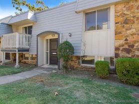 Quiet 2bd 2ba upstairs Condo. Unique floor plan with open concept thanks to removing the kitchen wall. Also, added a hidden washer and dryer inside unit. Balcony faces south, and along with the large southerly facing window lots of light in the living space. Quiet neighbors so peaceful living. Master bath has the finished tile shower and 2nd bath has the tub. Master also has massive walk through closet. Brand new carpeting installed May 3rd of 2023. 68th n Yale is across from St. Francis and easy access half way between Woodland Hills and Tulsa Hills.