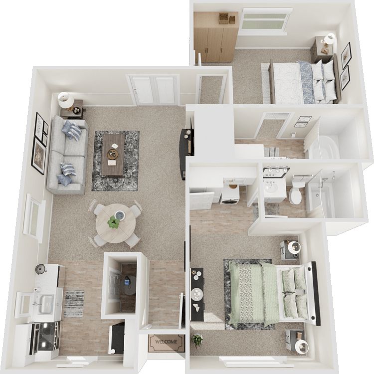 Experience quiet, comfortable living in a beautifully renovated apartment community surrounded by lush green space and mature trees. Our modern floor plans and stylish finishes are complemented by a peaceful setting that offers a true retreat from the bustle of daily life. Enjoy the tranquility of nature right outside your door in a neighborhood known for its calm atmosphere and scenic charm.