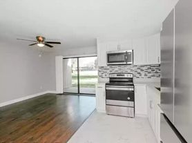 Condo has small kitchen with refrigerator, stove and dishwasher. Brand new wooden countertop, laminate floor though out the entire apt and very large patio with access from all the rooms.