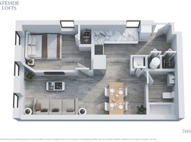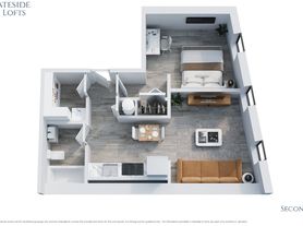 Features stainless steel appliances, quartz countertops, soft close cabinetry, luxury vinyl flooring, high ceilings, oversized windows, in unit laundry, and efficient heating and cooling systems.