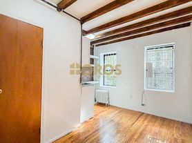 Bright studio offers high ceilings, hardwood floors, separate sleeping loft, exposed brick as well as open kitchenette.