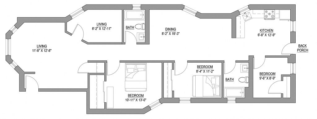 Gleaming hardwood floorsUpdated appliancesLarge living spacesLarge windowsHigh ceilingsCentral air and heatStanding and tub showers