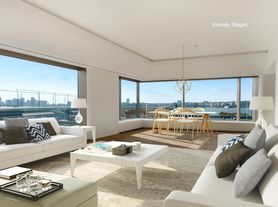 The expansive corner living room, with its oversized windows, fill the space with bright natural light and offer breathtaking views from the southern and western exposures. The eat-in Molteni kitchen is a chef's dream featuring integrated appliances, top-of-the-line craftsmanship, with beveled Blanco de Macael marble countertops and natural oak cabinetry.