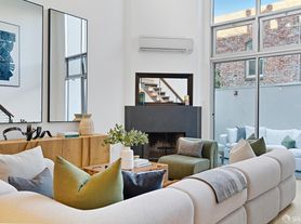 This expansive 1-bedroom, 1.5 bath corner penthouse loft, offers soaring floor-to-ceiling windows, abundant natural light, and sweeping city skyline views. A private balcony extends the living space, perfect for enjoying the urban landscape. The open kitchen features a SubZero refrigerator, Bosch gas cooktop, built-in oven and dishwasher, Studio Becker custom cabinetry, and a spacious pantry closet. The oversized primary bedroom on the second level includes new plush carpeting, space for a home office or sitting area, and an extra-large walk-in closet with custom organizers. Additional conveniences include an in-unit Bosch washer and dryer. Residents at The Palms enjoy resort-style amenities such as 24/7 concierge and security, a fully equipped fitness and yoga center, business and conference facilities, a private theater, and an inviting resident lounge. All just steps away from Muni, Whole Foods, Oracle Park, Chase Center, and some of San Francisco's best dining options.