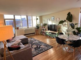 The primary bedroom features a large walk-in closet and has its own bathroom with a glass enclosed shower. The second bedroom is a generous size and the second bath is right across the hall. The apartment includes a washer/dryer, a Juliet balcony, hardwood floors, central air and heat, and great storage. The building has 24-hour door attendants, a live-in super, a gym, and a shared courtyard.