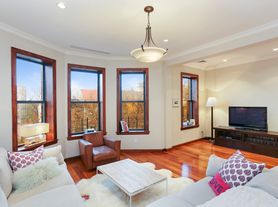 Each of the 2 full baths feature dual flush, water saving TOTO toilets, teak cabinets, modern freestanding soaking tub in master bath, brushed nickel Kohler faucets and marble tile and vanity tops. In addition, there is a shared roof deck with incredible views of the Manhattan skyline, and basement storage. Incredible details include restoration of entry foyer to include the mirror and carved wood built-in bench, original plaster, and exposed brick wall. Pets on approval.