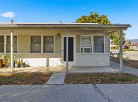 This cozy apartment offers a comfortable layout and recent updates throughout. The inviting living area features a wall heater, an air conditioning wall unit, and updated laminate flooring that flows seamlessly through the entire unit. The galley style kitchen includes ceramic tile countertops, a stove, and a refrigerator, with a small dining area and ceiling fan for added comfort. The bedroom also features a ceiling fan. Residents will appreciate the dual pane windows, fresh exterior paint, and newly landscaped surroundings. Off street parking is available behind the building for added convenience. Available for immediate move in.