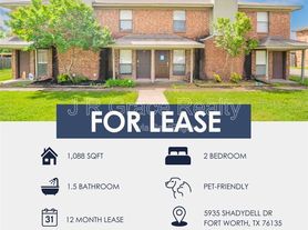 Experience convenient living at this 1,088 sq ft townhouse located at 5935 Shadydell in Fort Worth, TX. The property is a part of the Shadydell Townhomes and offers a comfortable living space with a private patio. The townhouse features a tasteful combination of laminate flooring in the main living areas and cozy carpeting in the bedrooms.